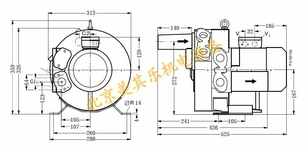 4GH 220/1.5kw高壓鼓風(fēng)機(jī)側(cè)面圖