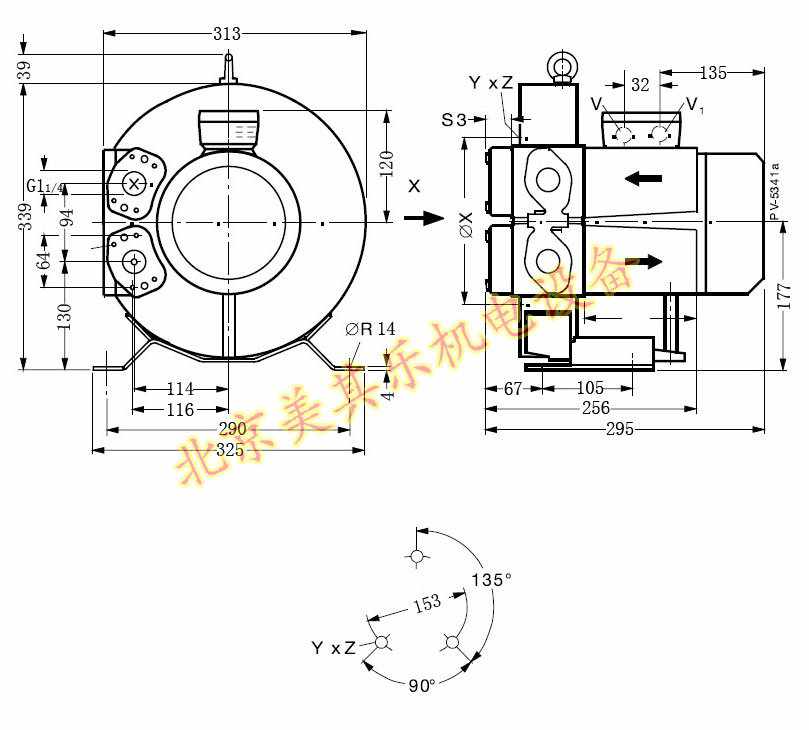 4GH310/850w高壓鼓風(fēng)機(jī)尺寸圖:單位mm