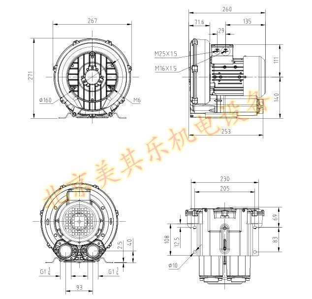 - 屬性參數(shù)表: 50HZ參數(shù) 60HZ參數(shù) 葉輪: 雙 (級(jí)) 葉輪: 雙 (級(jí)) 功率: 1.3 (Kw) 功率: 1.5 (Kw) 輸出電壓: 200-240V (V) 輸出電壓: 200-240V (V) 電流: 7.6 (A) 電流: 8.8 (A) 噪音: 66 dB(A) 噪音: 69 dB(A) 重量: 18 (Kg) 重量: 18 (Kg) 排吸氣量: 110 (m 3 /h) 排吸氣量: 145 (m 3 /h) 吸入壓力: -240 (mbar) 吸入壓力: -230 (mbar) 排氣壓力: 280 (mbar) 排氣壓力: 260 (mbar) 320-1.3kw風(fēng)機(jī)尺寸圖: