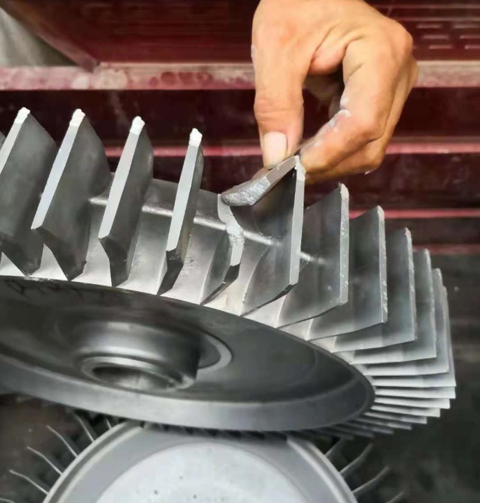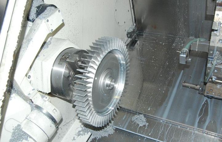 上圖為風(fēng)機(jī)葉輪的車床精加工打磨切割