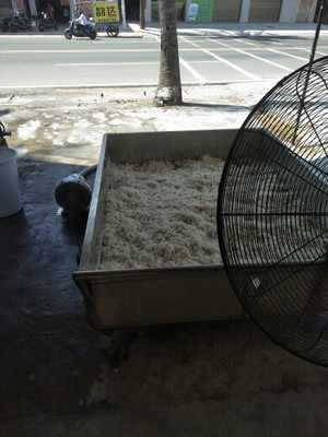 因熱水氣會(huì)上升,所以又單采用了一臺工業(yè)電風(fēng)扇,來加速物料上方空氣的流動(dòng),所以效率大大提升,縮短了工時(shí),節(jié)省時(shí)間,可比常規(guī)操作節(jié)省三分之二的耗時(shí)。