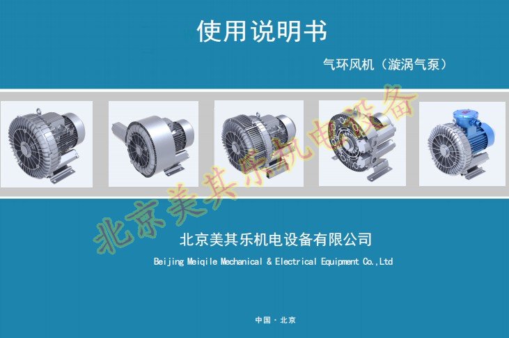 高壓風機說明書概況目錄:支持在線閱讀與下載,版權歸北京美其樂機電設備有限公司所有。