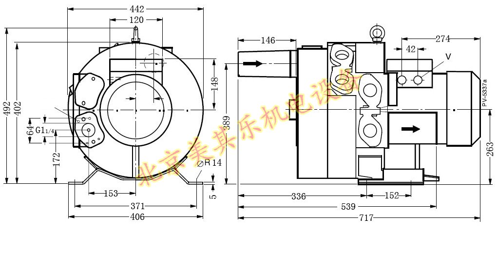 4GH 630/7.5kw高壓鼓風機側面圖