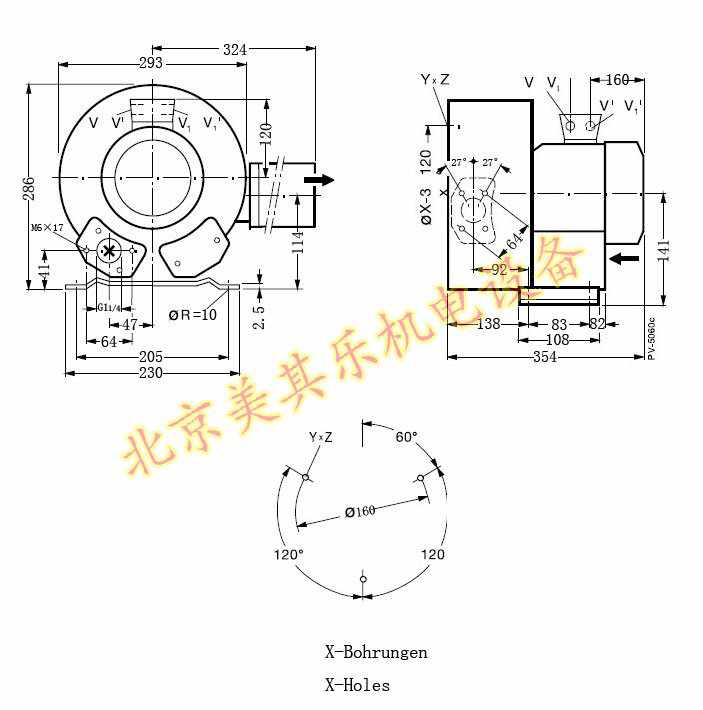 1.3kw雙段高壓鼓風(fēng)機尺寸圖:單位mm