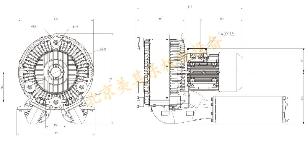 2GH940鼓風(fēng)機(jī)尺寸圖: